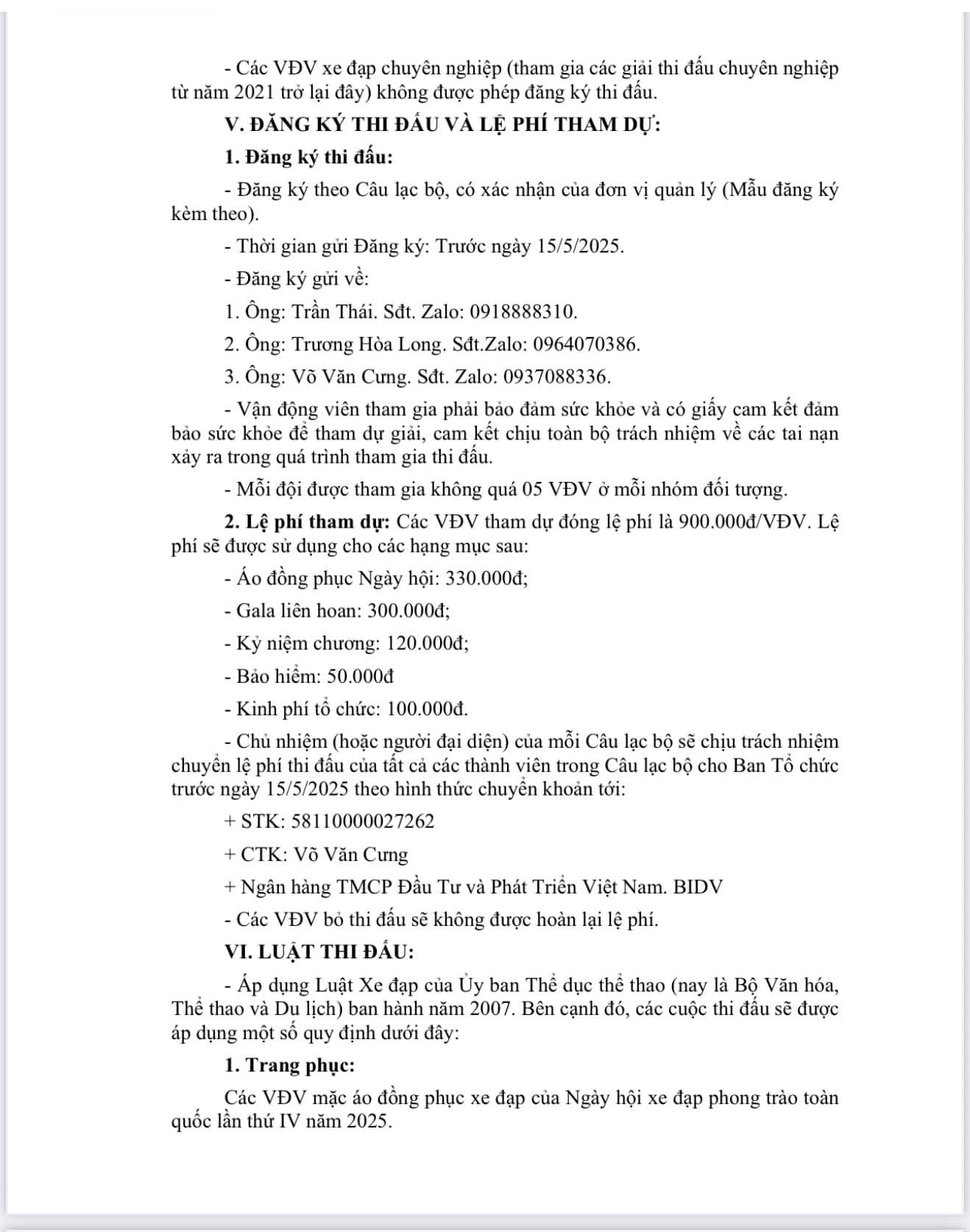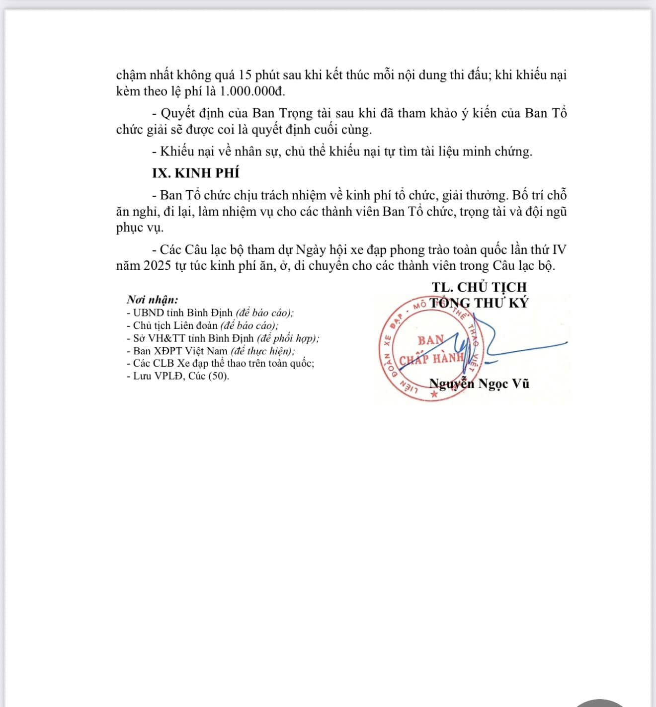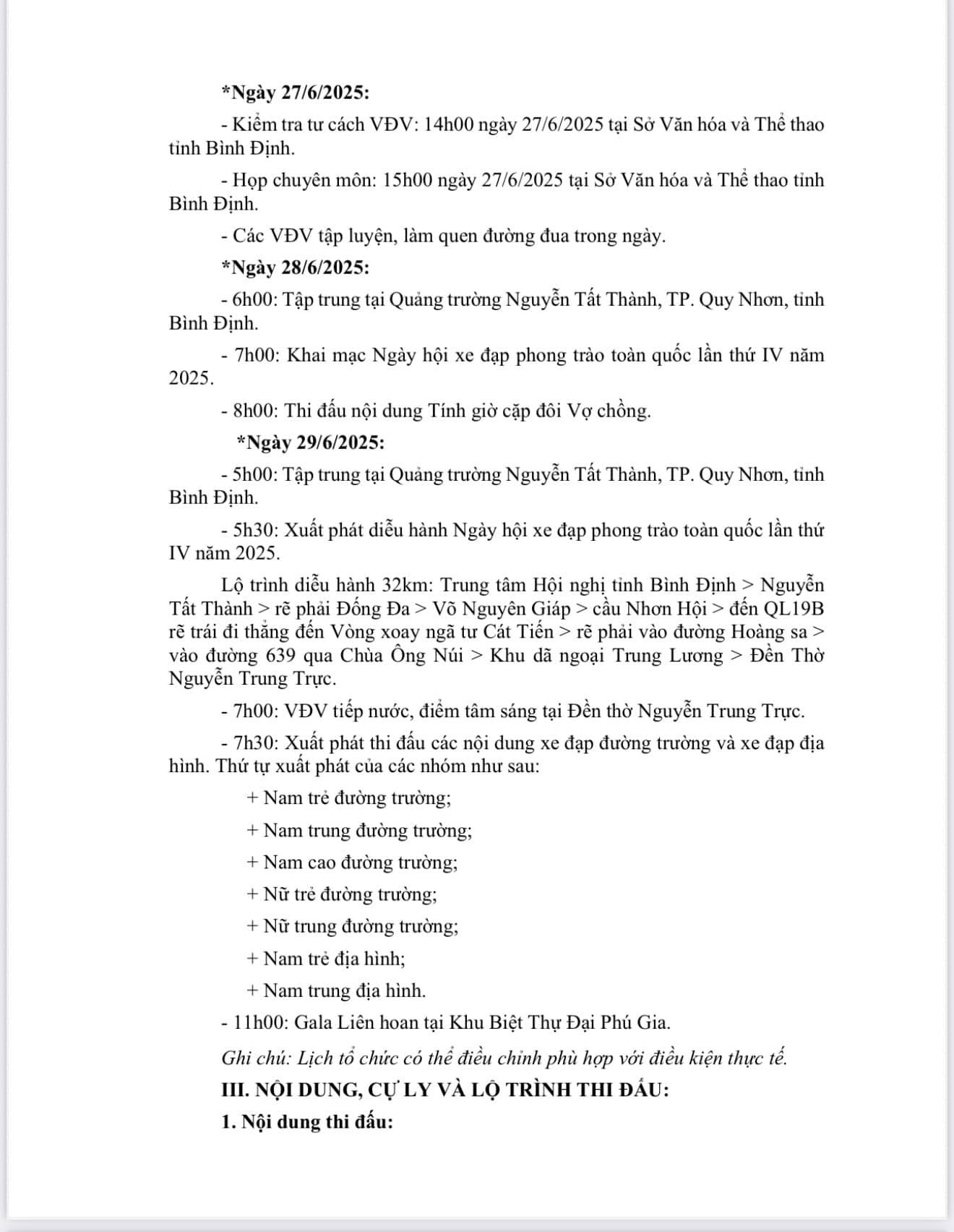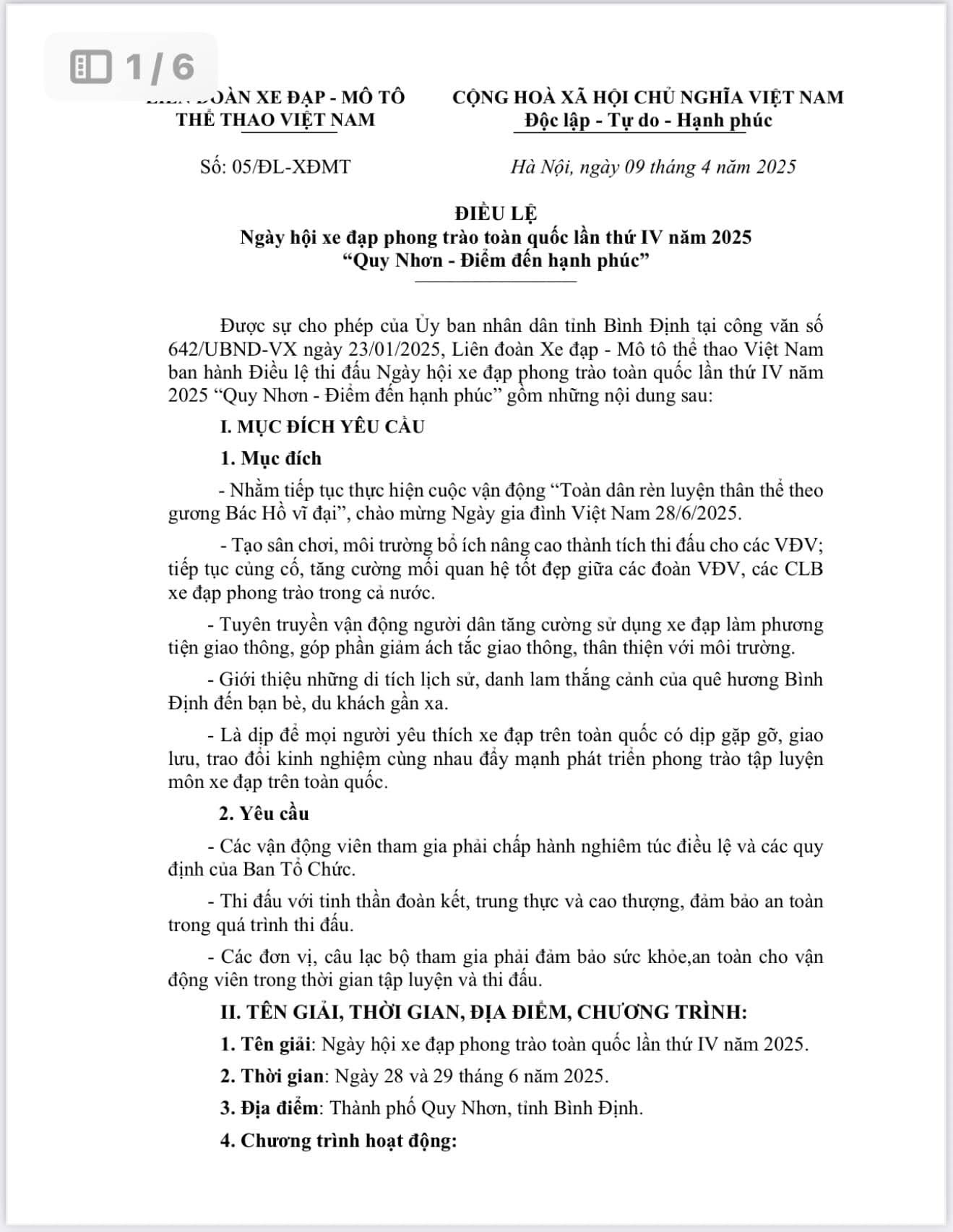 2025 Ngày hội xe đạp phong trào toàn quốc, Điều lệ Giải, Lịch hoạt động, Tin tức Điều lệ ngày hội xe đạp toàn quốc lần thứ IV năm 2025 “QUY NHƠN – ĐIỂM ĐẾN HẠNH PHÚC”